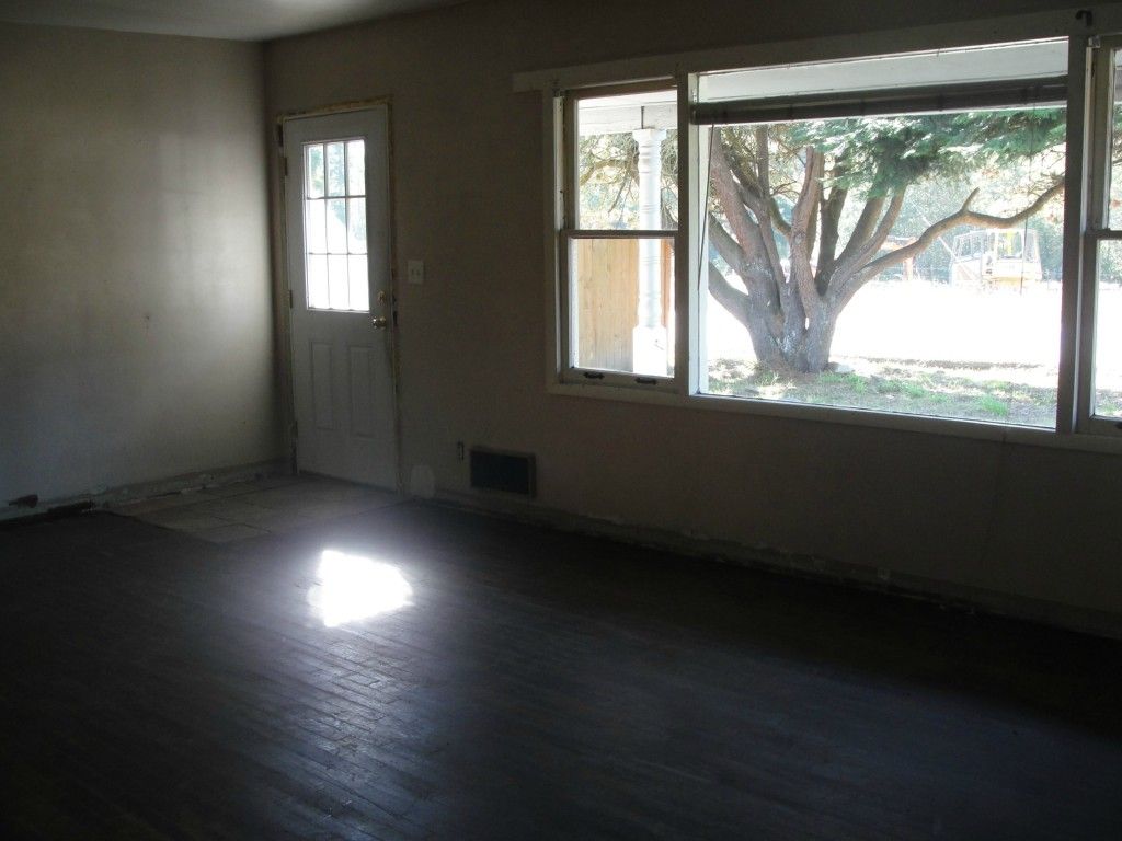 Living room. Missing from this photo is the fireplace that had cracked tiles.
